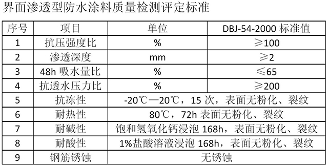 FMC-DPS永凝液防水劑執(zhí)行中華人民共和國(guó)建材行業(yè)JC/T1018-2006標(biāo)準(zhǔn),符合《界面滲透型防水涂料質(zhì)量檢驗(yàn)評(píng)定標(biāo)準(zhǔn)》DBJ01-54-2001技術(shù)標(biāo)準(zhǔn)。