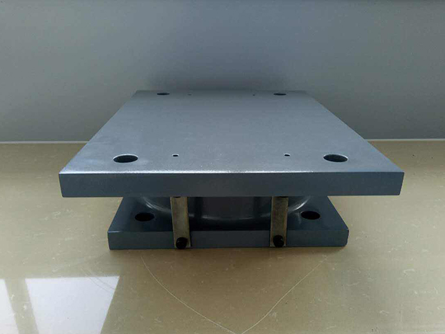 盆式支座的工作原理是利用半封閉鋼制盆腔內(nèi)的彈性橡膠塊,在三向受力狀態(tài)下具有流體的性質(zhì),來實現(xiàn)上部結(jié)構(gòu)的轉(zhuǎn)動;同時依靠中間鋼板上的聚四氟乙烯板與上座板上的不銹鋼板之間的低摩擦系數(shù)來實現(xiàn)上部結(jié)構(gòu)的水平位移。從實驗的數(shù)據(jù)來看,橡膠處于三向約束狀態(tài)時的抗壓彈性模量為5×104kg/cm2,比無側(cè)向約束的抗壓彈性模量增大近20倍,因而支座承載能力大大提高,解決了普通橡膠支座承載能力的局限。所以盆式支座是能滿足大的支承反力,大的水平位移,大的轉(zhuǎn)角要求的新型產(chǎn)品。