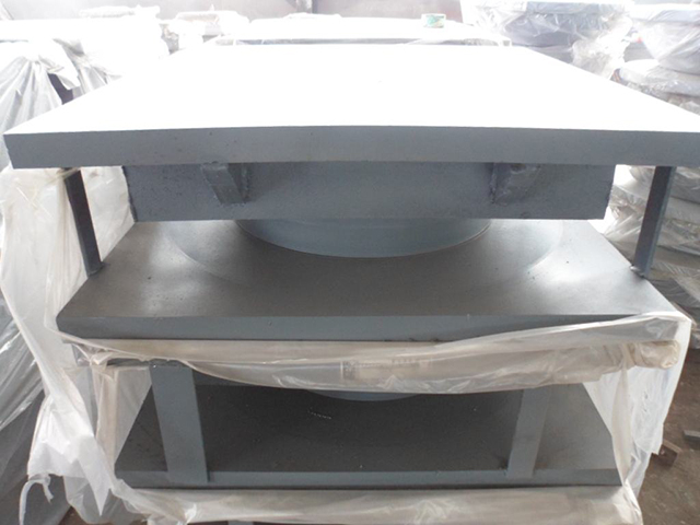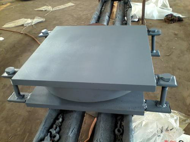 球型支座是由上支座板、下支座板、凸形中間板及兩塊不同形狀的聚四氟乙烯板組成。下支座板中間為一凹形球面,同凸形中間板相對應(yīng),兩者之間襯有一弧形四氟板,通過球面與之滑動來滿足梁端的轉(zhuǎn)動;上座板上的不銹鋼板與中間鋼板上的另一四氟板組成第二滑動面,完成梁體因溫差諸多原因所產(chǎn)生的伸縮位移。